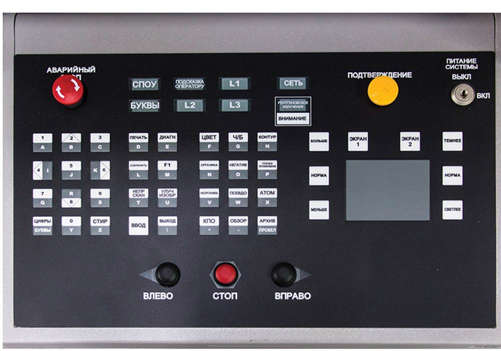 • Измерение атомного числа. Используя клавиатуру управления оператор может выделить любой участок на изображении для измерения его атомного числа. Это позволяет более точно оценить тип материала и степень его угрозы. Атомное число отображается с точностью 0,2.