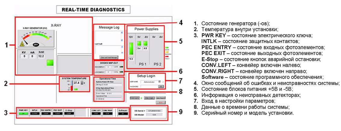 • Диагностика в реальном времени. Все установки XIS имеют встроенные средства диагностики модулей в режиме реального времени. Контроль параметров позволяет выявлять неисправности и эффективно их локализовать.