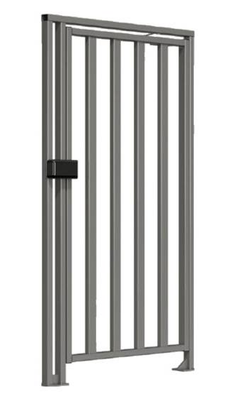Рама (1), состоящая из трех соединенных между собой поперечиной вертикальных стоек, и створка (2) и поставляются в собранном с помощью петель виде с установленным на раме электромеханическим замком (3). При монтаже калитки к раме и к створке крепится гидравлический доводчик (4), возвращающий створку в исходное положение после прохода. Калитка крепится к установочной поверхности анкерными болтами через четыре монтажных отверстия во фланцах стоек.