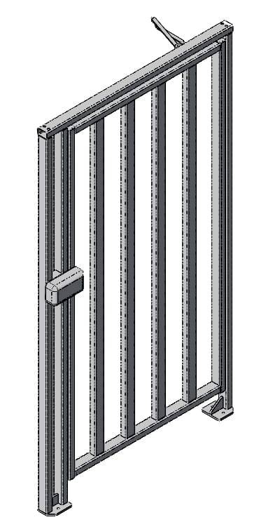 В исходном положении створка перекрывает зону прохода между стойками. Створка открывается в сторону доводчика, расположение монтажных отверстий которого,согласно его эксплуатационной документации, выбрано равным углу открытия 120°. Исходное состояние калитки– «закрыто на вход и на выход»