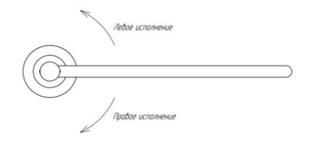 Исполнение калитки может быть выполнено в 2-х вариантах: правом и левом. На рисунке указано направление, куда калитка открывается автоматически.