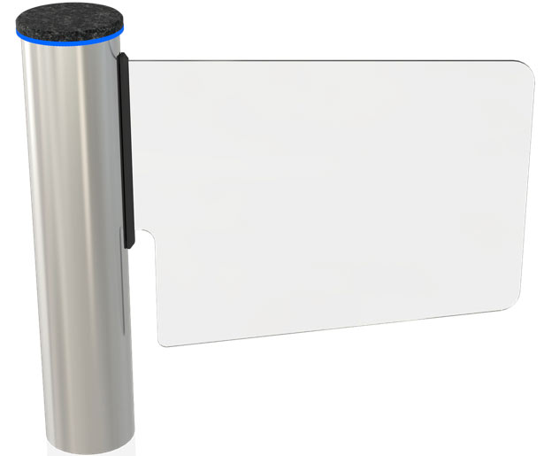 Турникет-калитка – это одно из наиболее экономичных решений, часто для одностороннего прохода на объект. Они представляют собой колонну из нержавеющей стали, на которой закреплена створка, открывающаяся с помощью мотора.