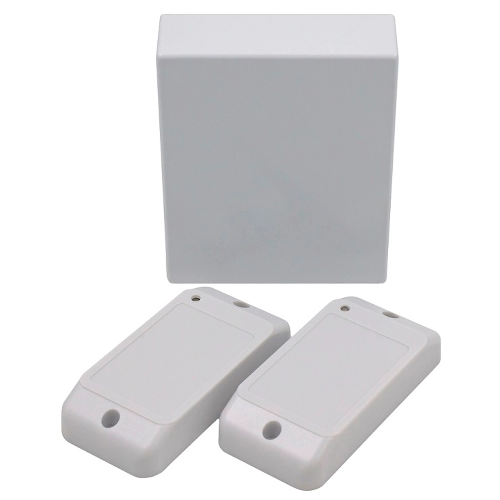 - Герконовые датчики (в комплект не входят). Один устанавливается на двери и позволяет контроллеру фиксировать факт открывания двери. Другие нужны для обеспечения охраны помещения и устанавливаются на окнах. В случае использования инфракрасного датчика движения герконовые датчики на окна можно не устанавливать.