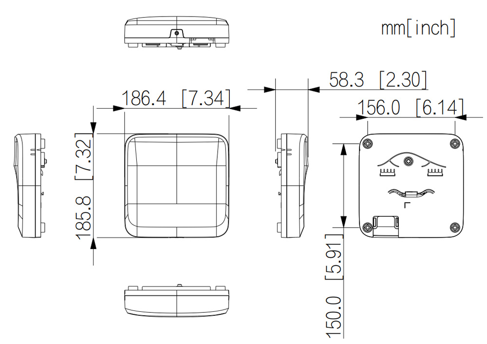 • Размеры: 186.4 мм × 185.8 мм × 58.3 мм