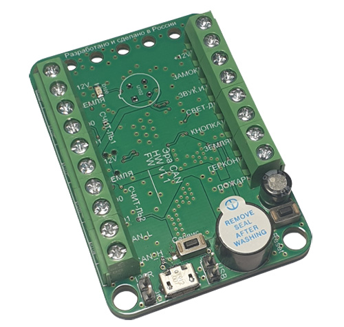 Программируется напрямую через встроенный USB с мобильного телефона или ПК, в сетевом режиме по CAN шине. В режиме программирования через USB не требует подключения питания. Управляет одной точкой прохода в режиме электромеханического или электромагнитного замка.