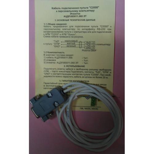 Кабель для подключения пульта С2000 к компьютеру. Предназначен для подключения пульта С2000 к компьютеру по последовательному интерфейсу RS-232.