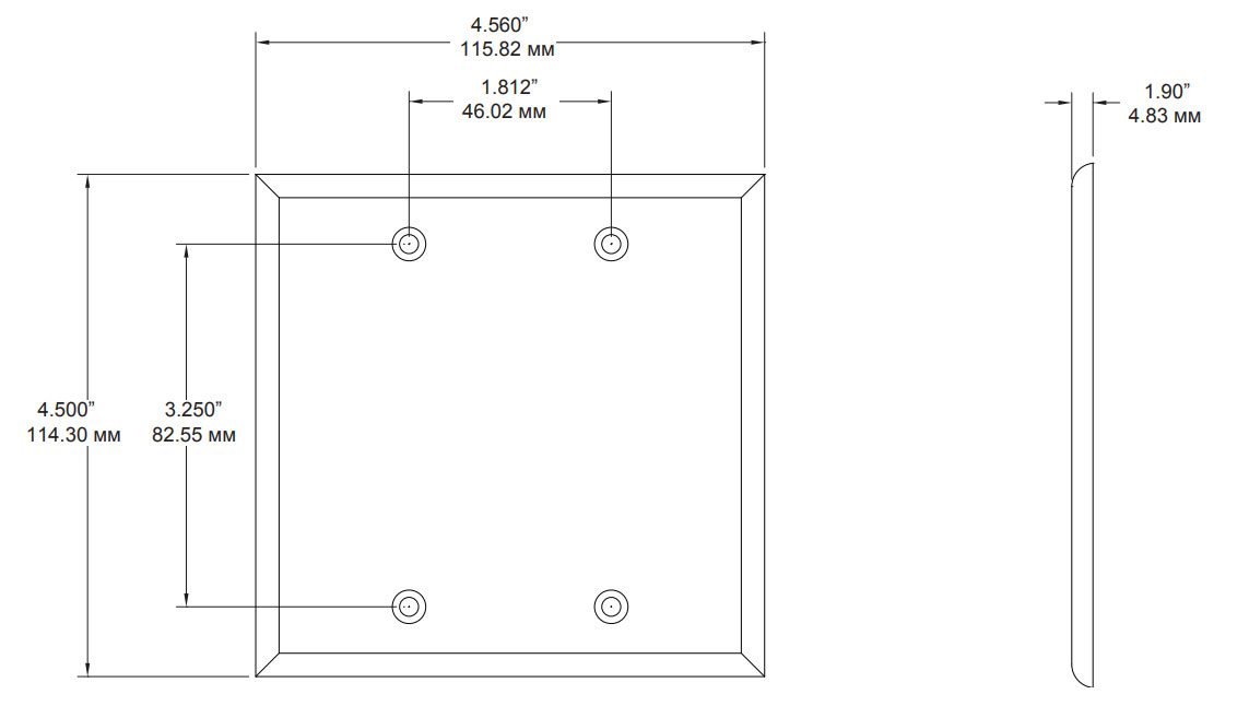 • Внешние габариты: ширина 115.82 мм x высота 114.30 мм x толщина 4.83 мм