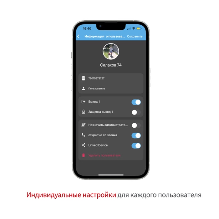 • Настраиваемое расстояние открытие для каждого пользователя (возможность открыть откуда угодно или только находясь вблизи от исполнительного устройства).