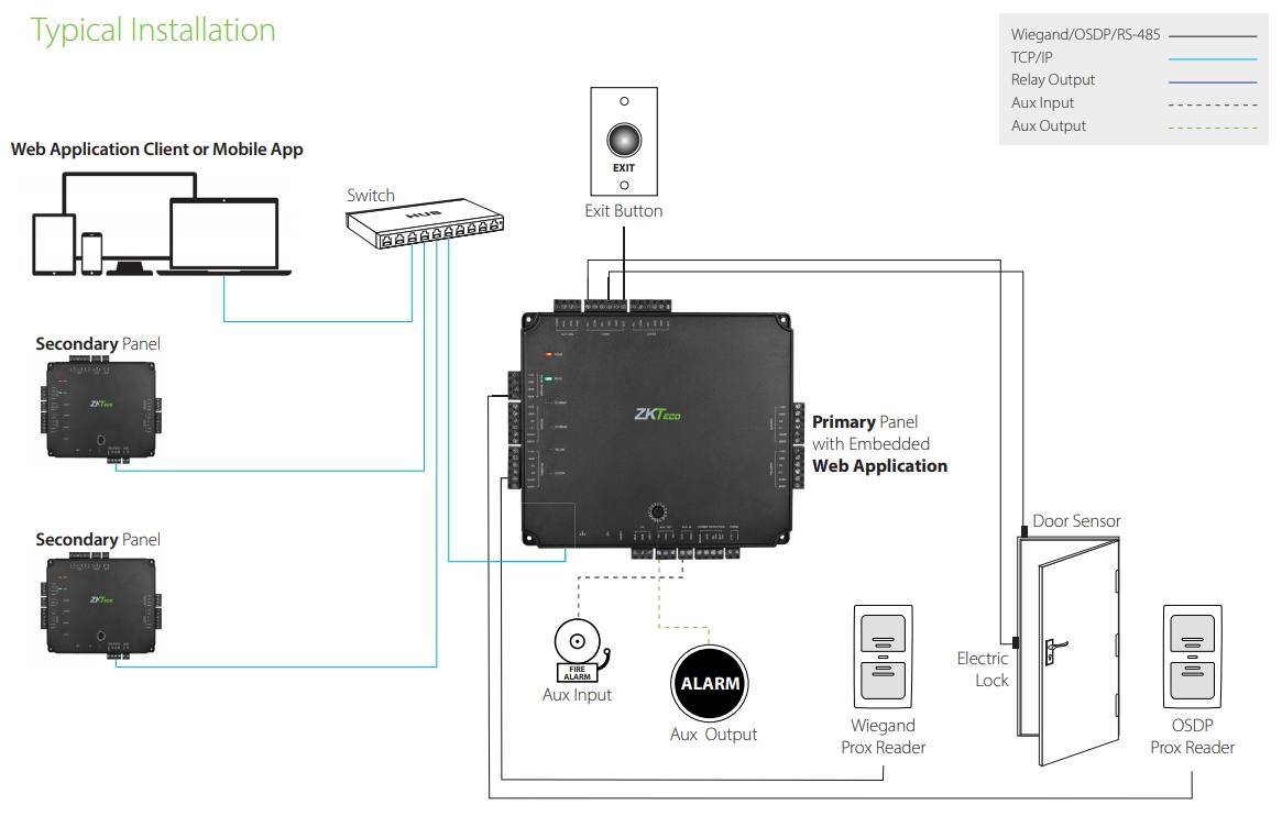 • Кол-во считывателей: 4 (Wiegand or OSDP Readers)