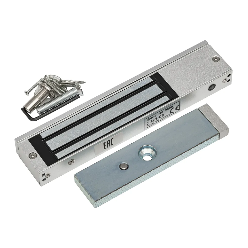 Замок работает от питания 12 или 24 В, а встроенный герконовый датчик положения двери позволяет отслеживать состояние закрытия. Кроме того, устройство оснащено двухцветной световой индикацией, которая облегчает визуальный контроль работы. Электромагнит обладает усилием удержания 180 кг, что обеспечивает надежное фиксирование двери в закрытом положении и препятствует несанкционированному доступу.