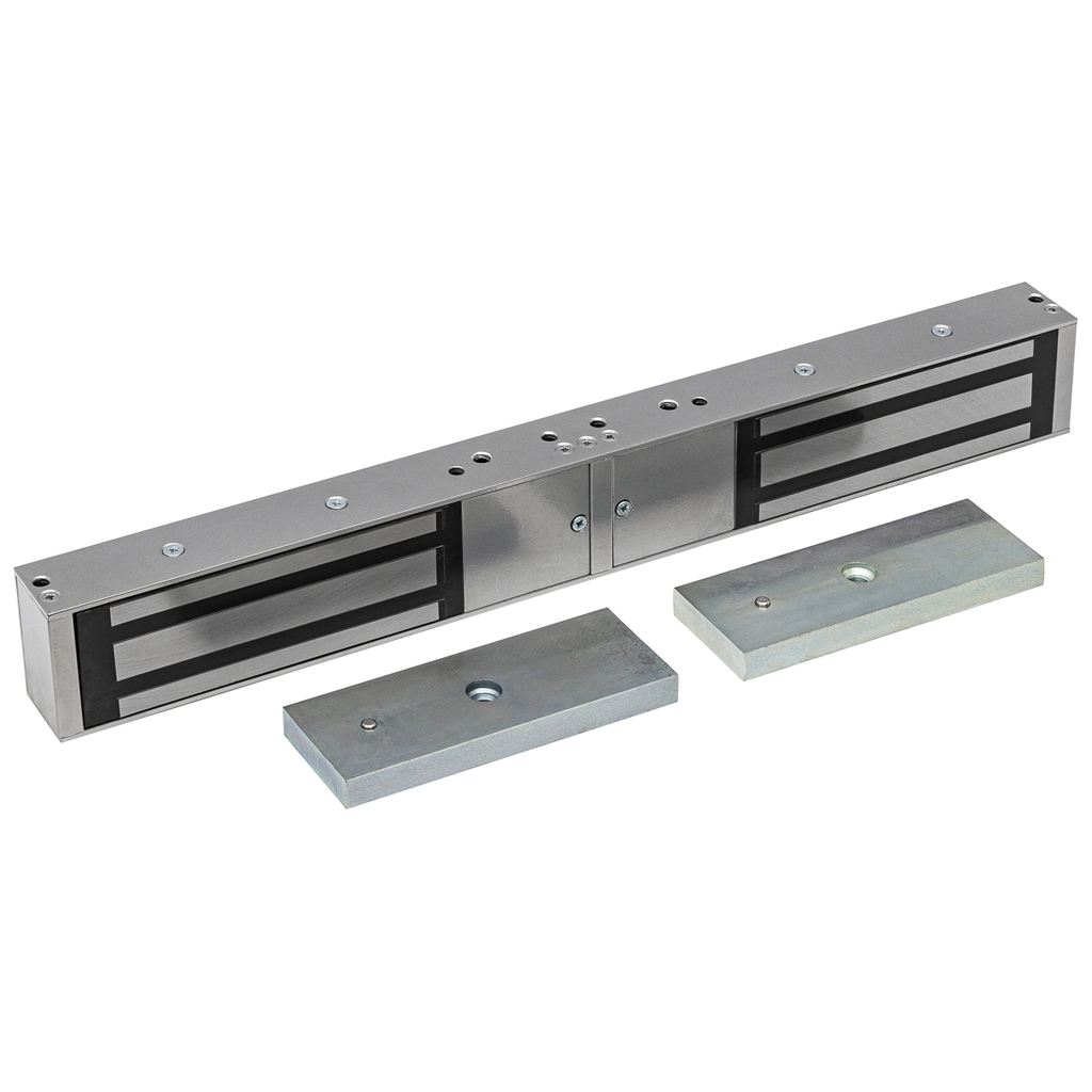 Замок работает от постоянного напряжения 12 В и потребляет ток до 1300 мА. Для компенсации остаточной намагниченности используется специальный механический компенсатор на якоре, что обеспечивает корректное открывание и закрывание дверей. В комплект поставки входят два монтажных уголка, что облегчает процесс установки и обеспечивает дополнительную надежность крепления.