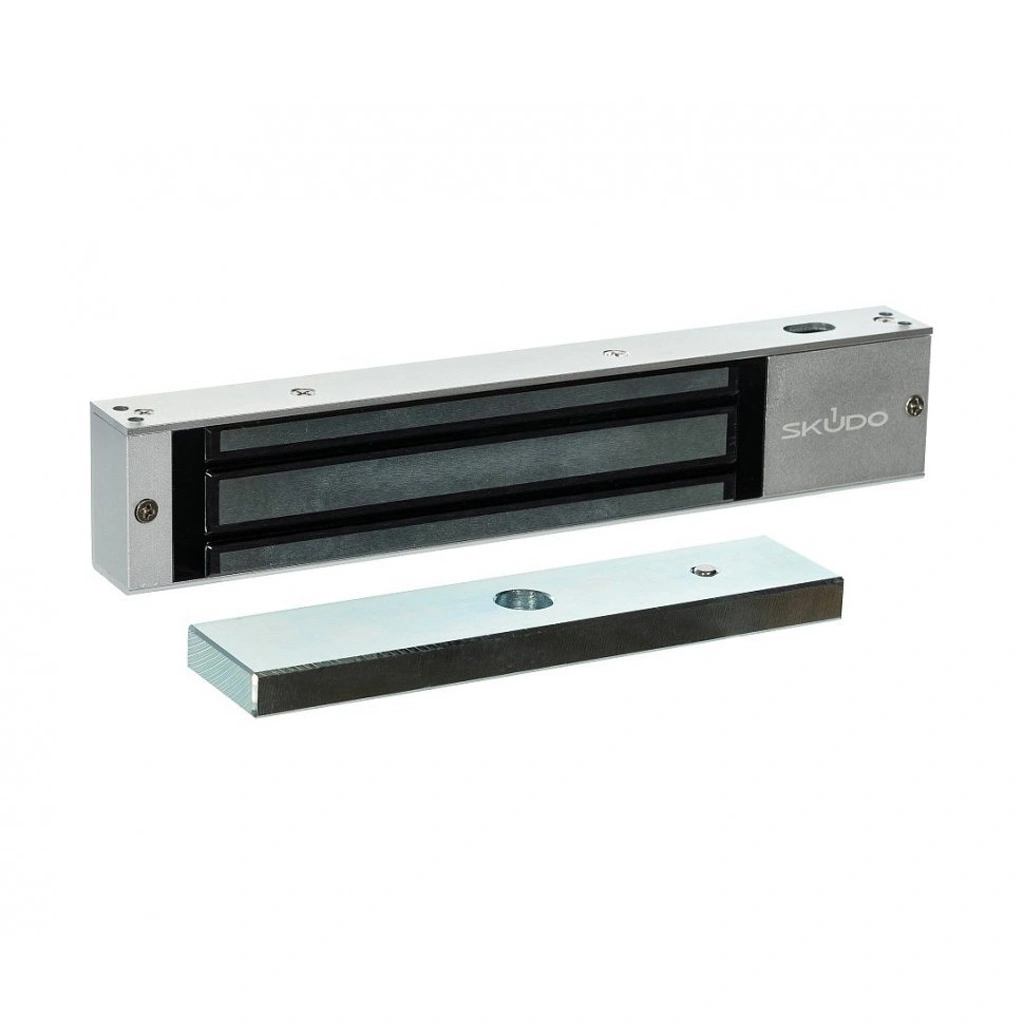 Электромагнитный замок, 12В / 24В DC не более 480мА (12В) / 290мА (24В), усилие 350 кг. Мониторинг состояния замка (датчик Холла: реле НО/НЗ/ОБЩ), световая индикация.