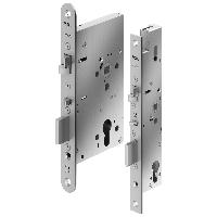 Двухточечное запирание происходит под воздействием взведенной пружины при закрывании двери. Универсальная спусковая собачка (могут применяться модели DIN L/R с лицевой планкой 24 мм). Отпирание снаружи ключом либо с помощью подключаемой дверной ручки.