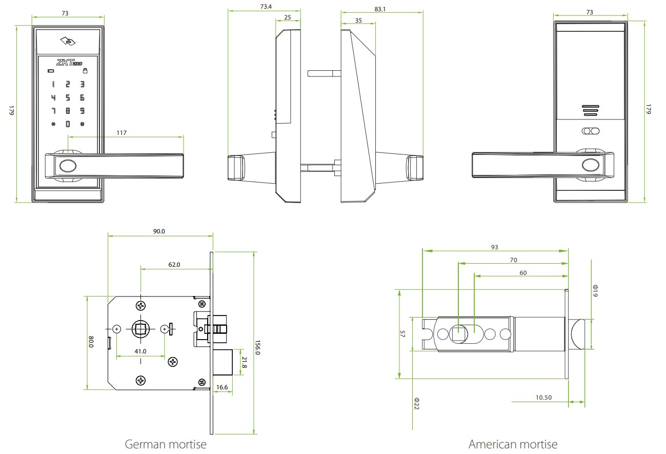 Беспроводной электронный врезной замок ZKTeco AL10DB (рычажный, европейский стандарт) для дверного полотна толщиной 30-54 мм, поддерживает идентификацию по карте, паролю.