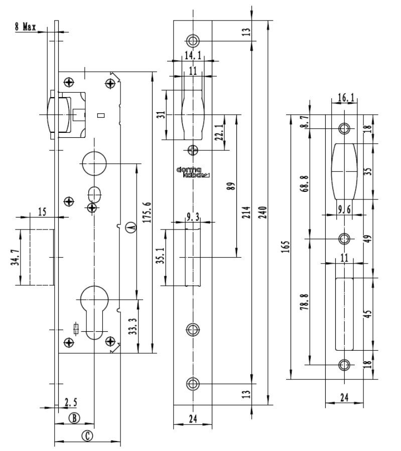 • Замок с торцевой планкой 24 мм для дверей из алюминиевого профиля.