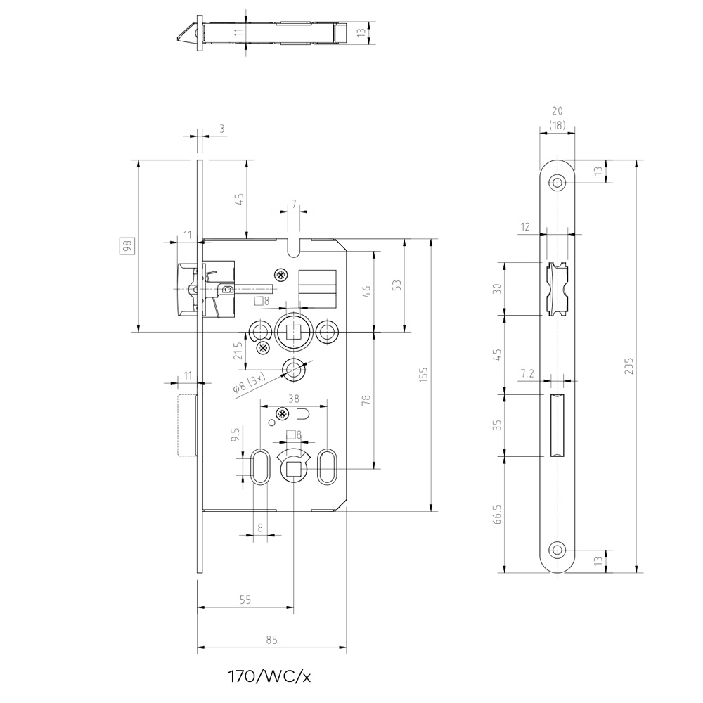 - Ø WC замки для туалетных дверей и ванных комнат: 78 мм