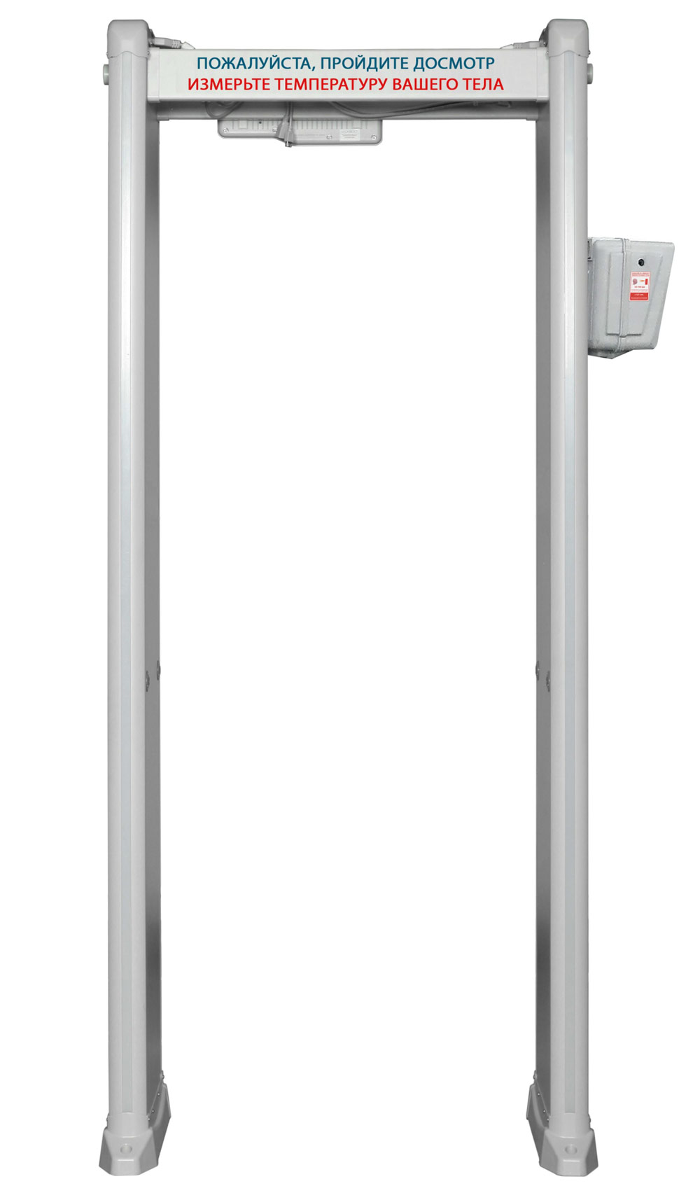 Пирометр, встроенный в отдельный блок управления, определяет температуру входящих в проем детектора до сотых градуса; при превышении предварительно настроенного предела подает сигнал тревоги на главный блок управления металлодетектором; после чего срабатывает звуковая сирена и подается сигнал на закрытие дверей, турникетов и т.д. (при наличии доп. опции – «сухой контакт»).