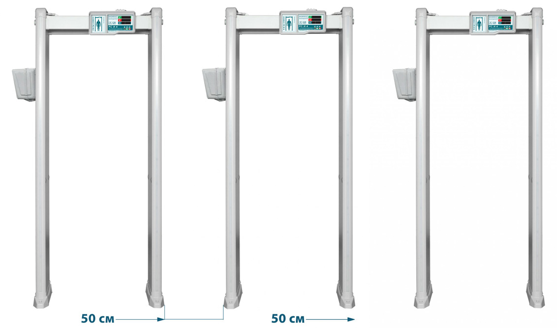 Металлодетекторы БЛОКПОСТ РС И 6 при параллельной эксплуатации рекомендуется располагать на расстоянии от 50 см друг от друга. Данное оборудование имеет несколько рабочих частот, благодаря чему снижаются взаимные помехи смежных металлодетекторов и обеспечивается возможность параллельной эксплуатации. Рекомендуется устанавливать разные значения рабочих частот для металлодетекторов, стоящих рядом друг с другом.