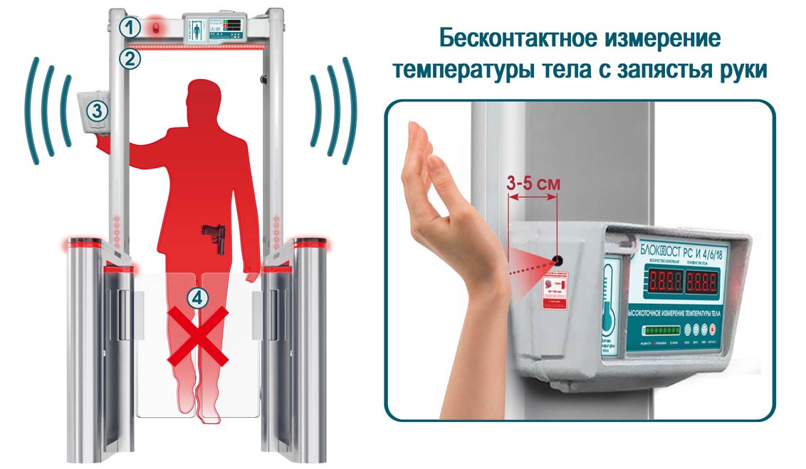 Компания «БЛОКПОСТ» представляет новую модель арочного металлодетектора – БЛОКПОСТ РС И 6 с бесконтактным, высокоточным пирометром. Этот металлодетектор предназначен не только для выявления запрещенных к проносу металлических изделий, но и для измерения температуры тела входящего в рамку человека. Досмотр проходит в потоковом режиме с выдачей сигнала тревоги при превышении установленного предельного значения.