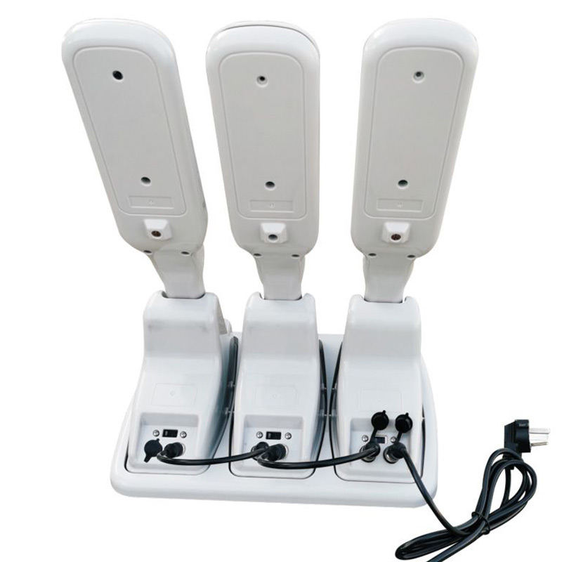 Металлодетектор легко присоединяется к зарядной станции. Зарядное устройство может заряжать до 3-х металлодетекторов одновременно.