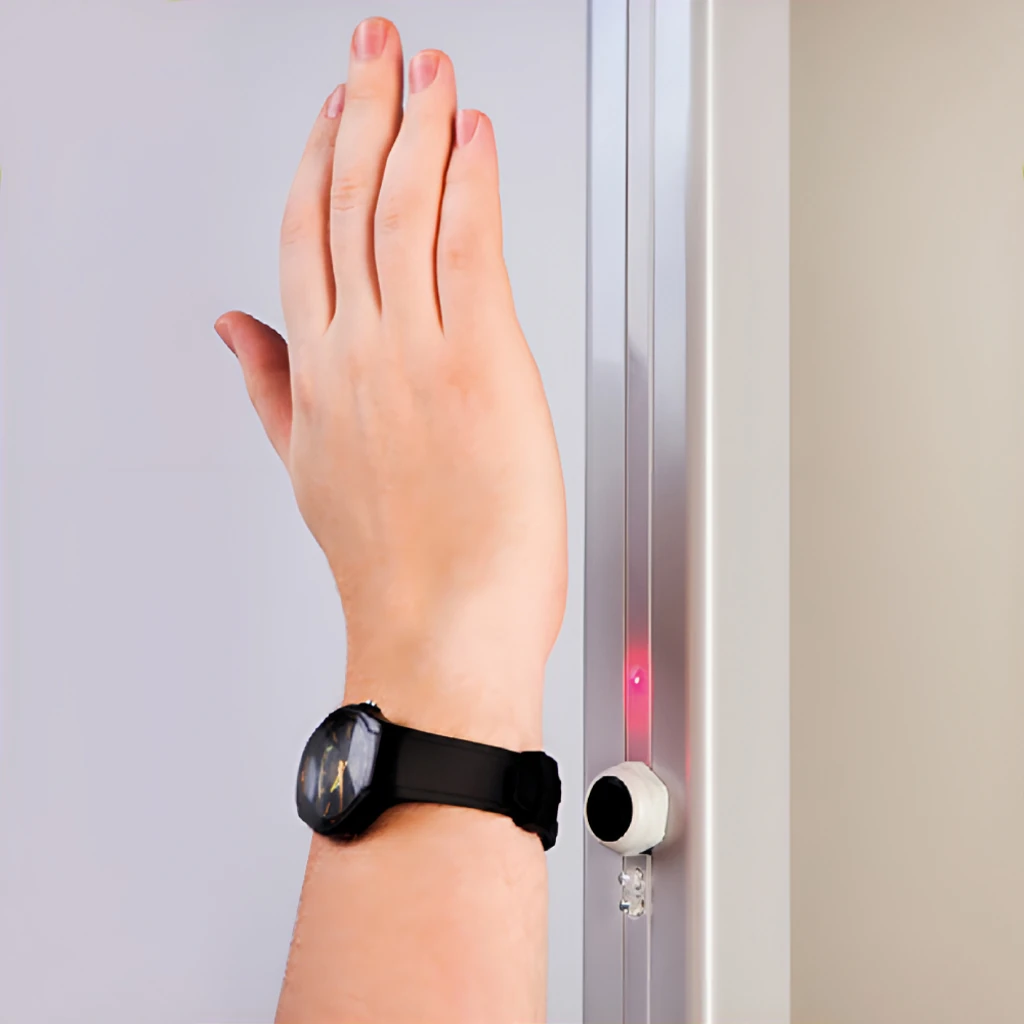 - Встроенный бесконтактный термодатчик для измерения температуры тела посетителей.