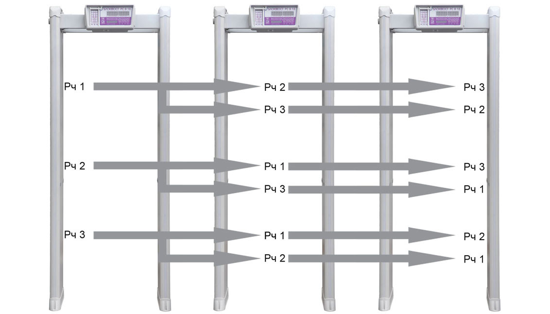 При оборудовании входной группы зоной досмотра, металлодетекторы РС В 18 можно располагать как ступенчато, так и параллельно друг другу в одну линейку от 15 моделей в каждой.