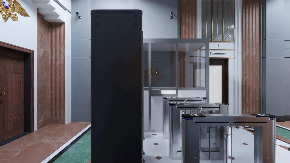 На контрольно-пропускных пунктах, регулируемый сигнал тревоги дублируется световой индикацией на торцевой части левой и правой антенных панелей, а также дополнительно отображается на экране блока управления. Это позволяет оператору точно определить местонахождение одного или нескольких металлических предметов на теле человека, в его одежде или в багаже. Для удобства на изделиях размещена двухцветная световая индикация СТОЙ/ИДИ, которая позволит регулировать проход людей, через зону контроля изделий.