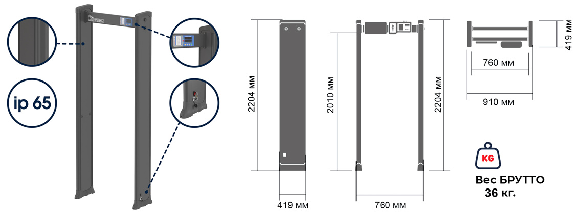 - Габариты прохода (Д×Ш×В): 420×760×2000 мм