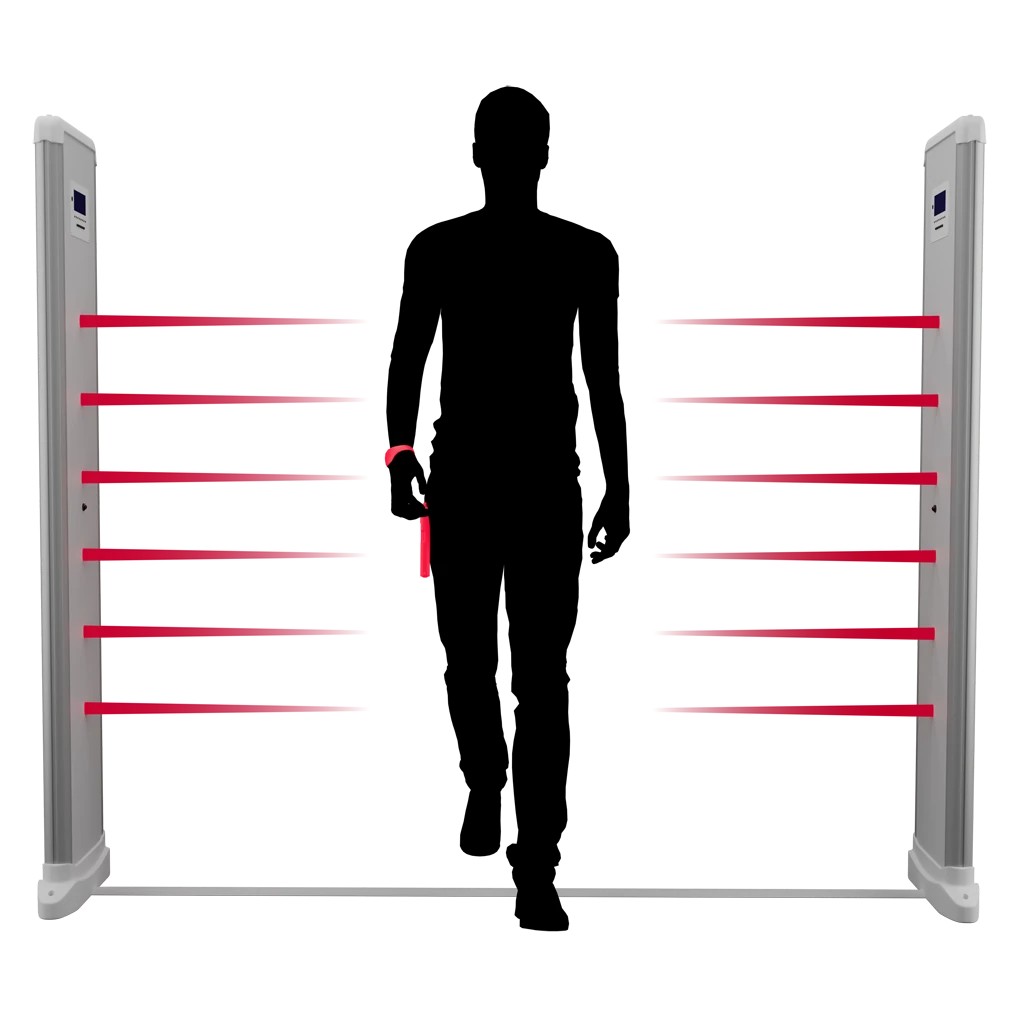 Шесть независимых зон обнаружения распределены по высоте, каждая зона подсвечивается при тревоге, что обеспечивает наглядную локализацию предмета. Двусторонняя работа панелей формирует непрерывное поле контроля между стойками, исключая «мертвые зоны» и повышая устойчивость к внешним помехам. Модель отличается небольшими габаритами, современным дизайном и возможностью всепогодного исполнения, что делает её подходящей для помещений и уличных пунктов пропуска.