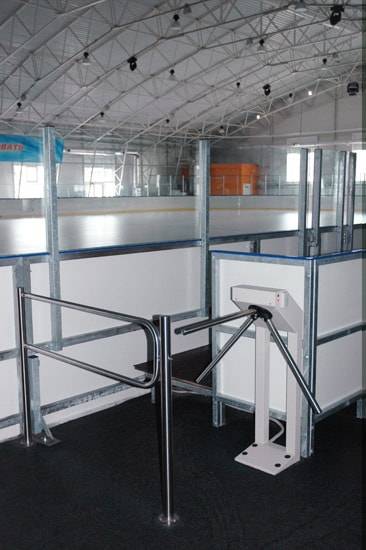 • Поворотная секция ограждения, предназначенная для формирования зоны прохода и организации аварийного выхода. Имеются две модификации – поворотная секция с механическим УБ и автоматическая поворотная секция с электромагнитным УБ.