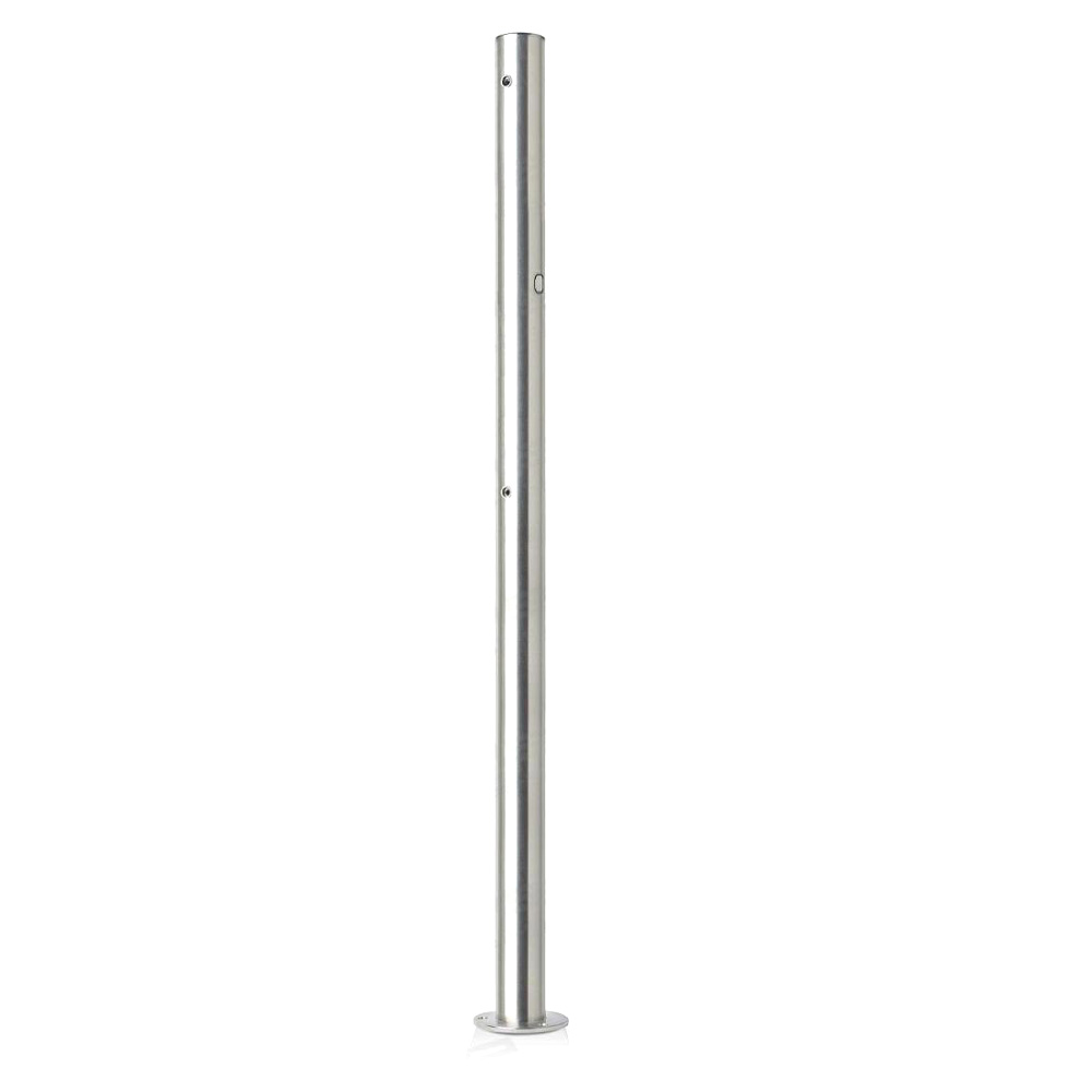 Стойка ограждения из нержавеющей шлифованной стали. 2 отверстия с резьбой М8. Заглушка стойки выполнена из нержавеющей полированной стали, что делает изделие более практичным в использовании.