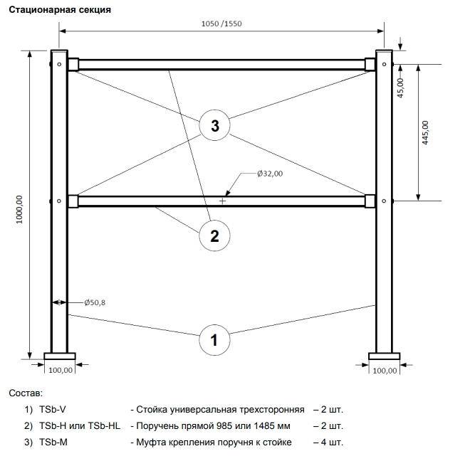 • Высота стойки ограждения: 1000 мм