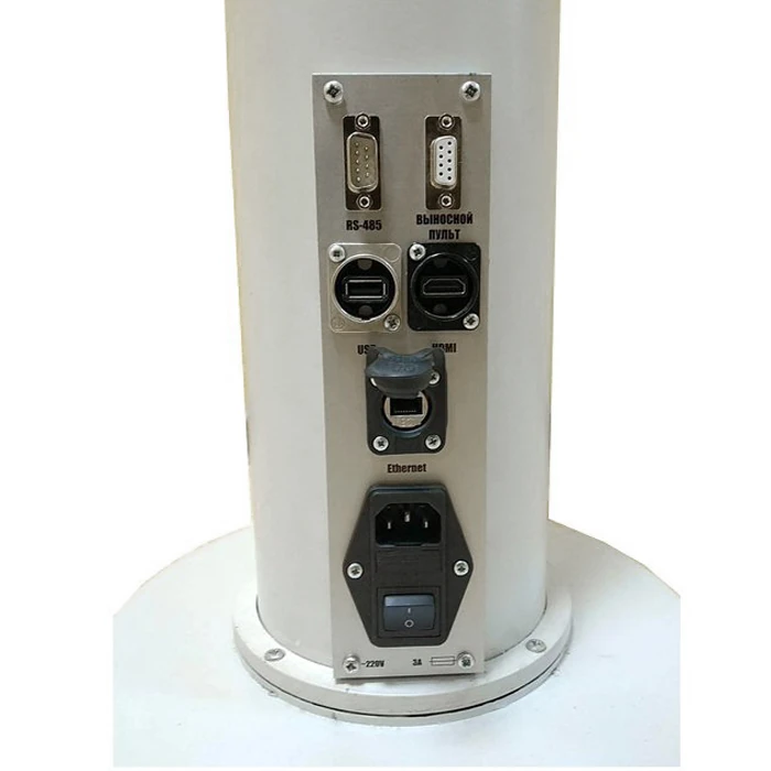 Все разъёмы для присоединения блока управления к блокам детектирования, а также кабель переменного тока и кабель к персональному компьютеру (IBM PC через порт RS-485) находятся на верхней панели блока управления.