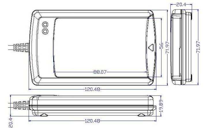• Размеры: 120.5 мм (Д) × 72.0 мм (Ш) × 20.4 мм (В)
