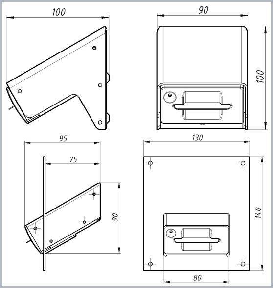 В комплект поставки входит два типа кронштейнов, позволяющих закрепить считыватель как «накладным» способом, так и «врезным».