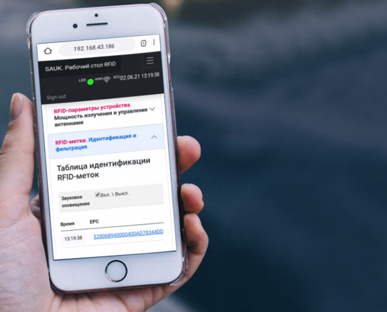 • Мониторинг RFID-меток: WEB-интерфейс. Обнаруженные RFID-считывателем метки отображаются в таблице. Также на основной форме дублируется цвет светодиодной индикации лицевой панели.