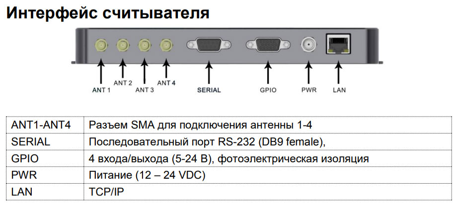 • Поддержка стандартов: EPC Class1 Gen2 и ISO 18000-6-C