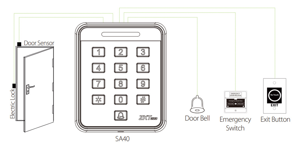 SA40 - это автономное устройство, которое поддерживает аутентификацию по паролю и карте для контроля доступа.