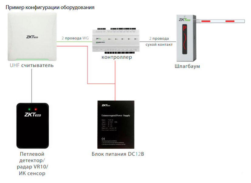 Схема установки UHF считывателя на стойке возле шлагбаума