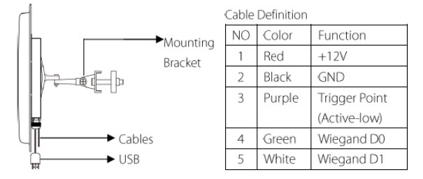 • Выходной интерфейс: Wiegand 26(Default) /Wiegand 34, USB