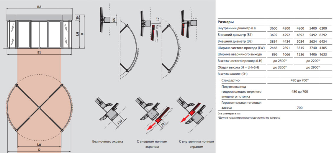 | Тип карусельной двери | большой ёмкости | большой ёмкости | стандартная | полностью стеклянная | индивидуальная | защитная |
