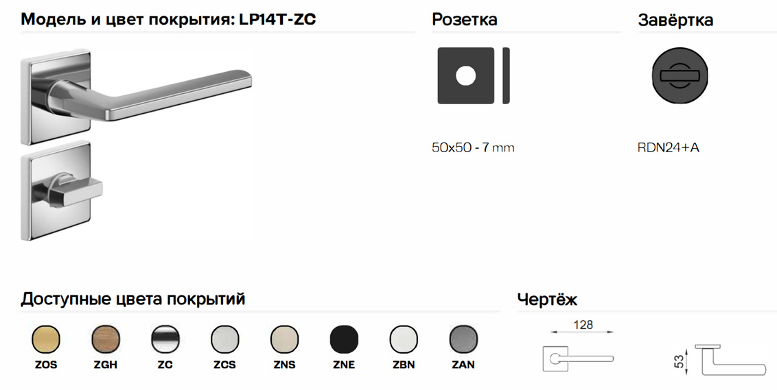 • LP14T ZCS с сантехнической заверткой (без инд.), 38-55 мм, шп. 8 мм, матовый хром (8010730)