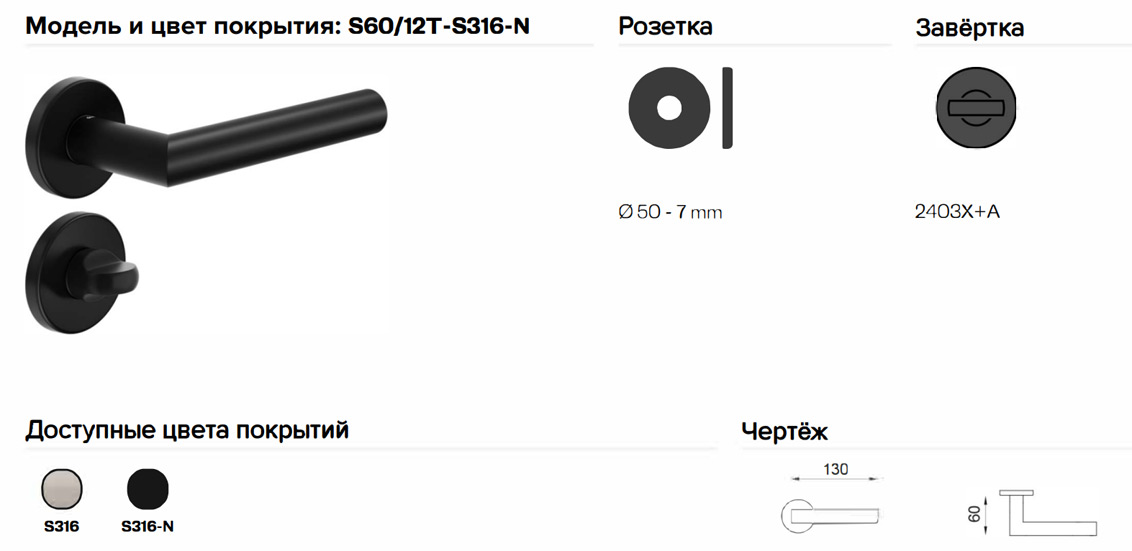 • S60/12T/L с сантехнической заверткой (с инд.), 38-55 мм, шп. 8 мм, цвет черный (8012668)