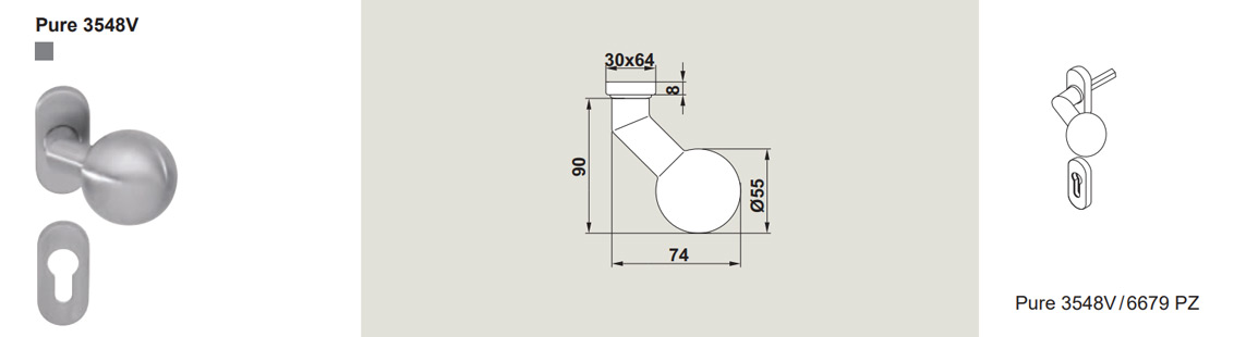 • 1/2 комплекта ручек Pure 8906 / 6621 / 6679, 38–56 мм, 8 мм, нерж. ст., ПРАВАЯ (20) (90050055247)