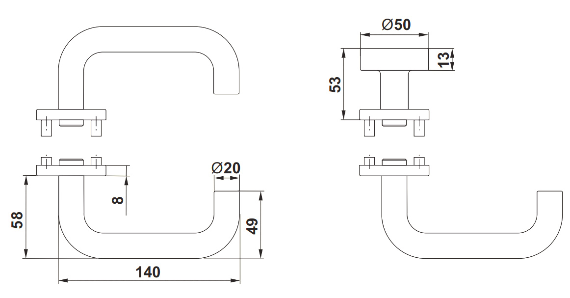 Полукомплекты поставляются с правосторонней или левосторонней пружиной для возврата нажимной ручки в горизонтальное положение.