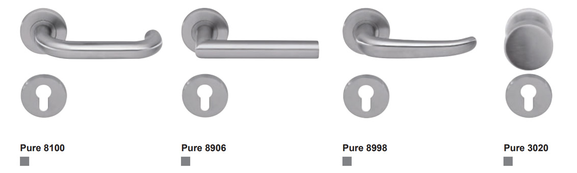 Независимо от того, какой материал вы выбираете, с ручками Pure вы можете быть уверены, что получите современную элегантную дверную фурнитуру. Ассортимент изделий и качество поверхностей отвечают требованиям стандартных применений как в частных домах, так и для внутренних дверей в офисных зданиях.