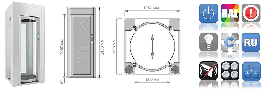 Габариты | 1050х1050х2400 мм |