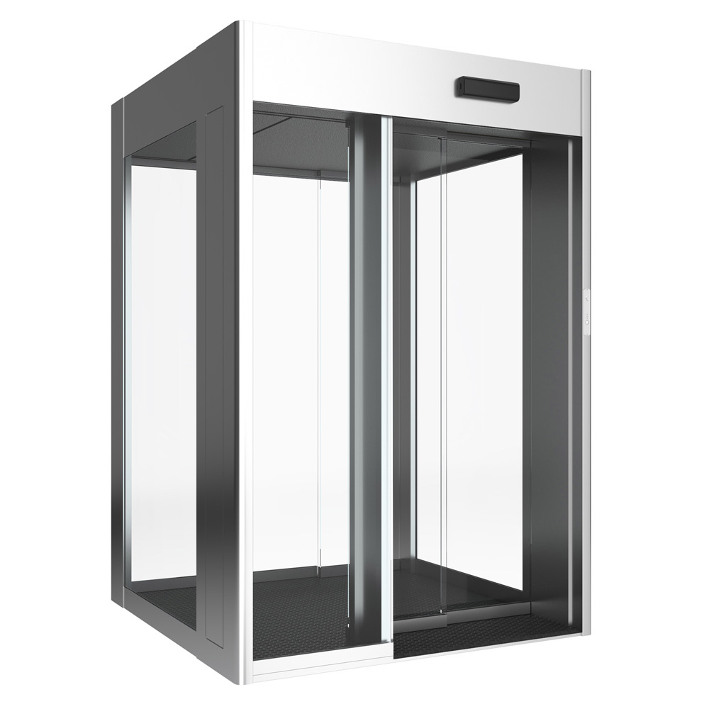 Элегантный внешний вид кабин из полированной нержавеющей стали (AISI 304) представит Вашу входную группу в наиболее привлекательном свете и идеально подойдет под общий интерьер холла с использованием декоративных элементов и конструкций соответствующей отделки.