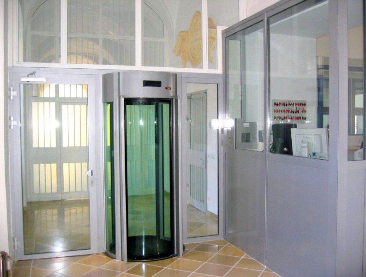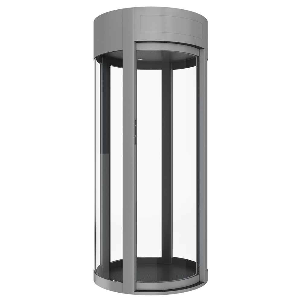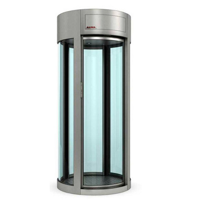 Автоматическая шлюзовая кабина цилиндрической формы с двумя полукруглыми дверьми производства компании Saima Sicurezza S.p.A. (Италия).