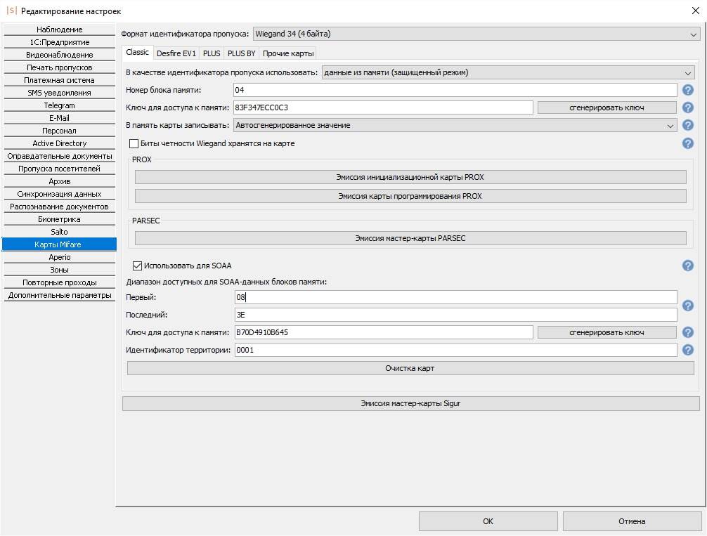 В рамках Sigur, на данный момент, в качестве идентификаторов для работы с офлайн-замками используются карты Mifare Classic. Первоначально замки конфигурируются через ПО производителя замка. Создание пользователей, рабочих графиков, назначение правил доступа - в ПО Sigur.Получение событий и работа с ними